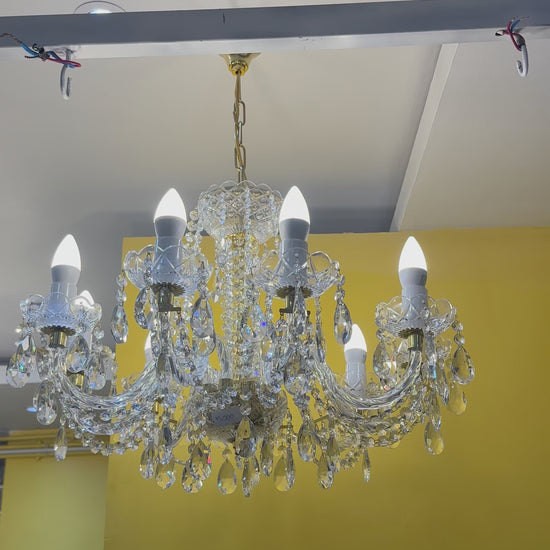 Offrez à votre intérieur le 17ème œuvre d'art de la collection de lustres Prousek Majesté, alliance parfaite du bronze et de laiton doré, sublimée par des pampilles en cristal « Brouchini ». Conçu par les artisans Diana Alekseyevna (Russie) et Konstantin Stepanovytch Drach (Ukraine), et Mourad Brahimi (Algérie). Ce luminaire à huit bougies E14 diffuse une lumière douce et chaleureuse, idéale pour magnifier un salon, une salle à manger ou une entrée.